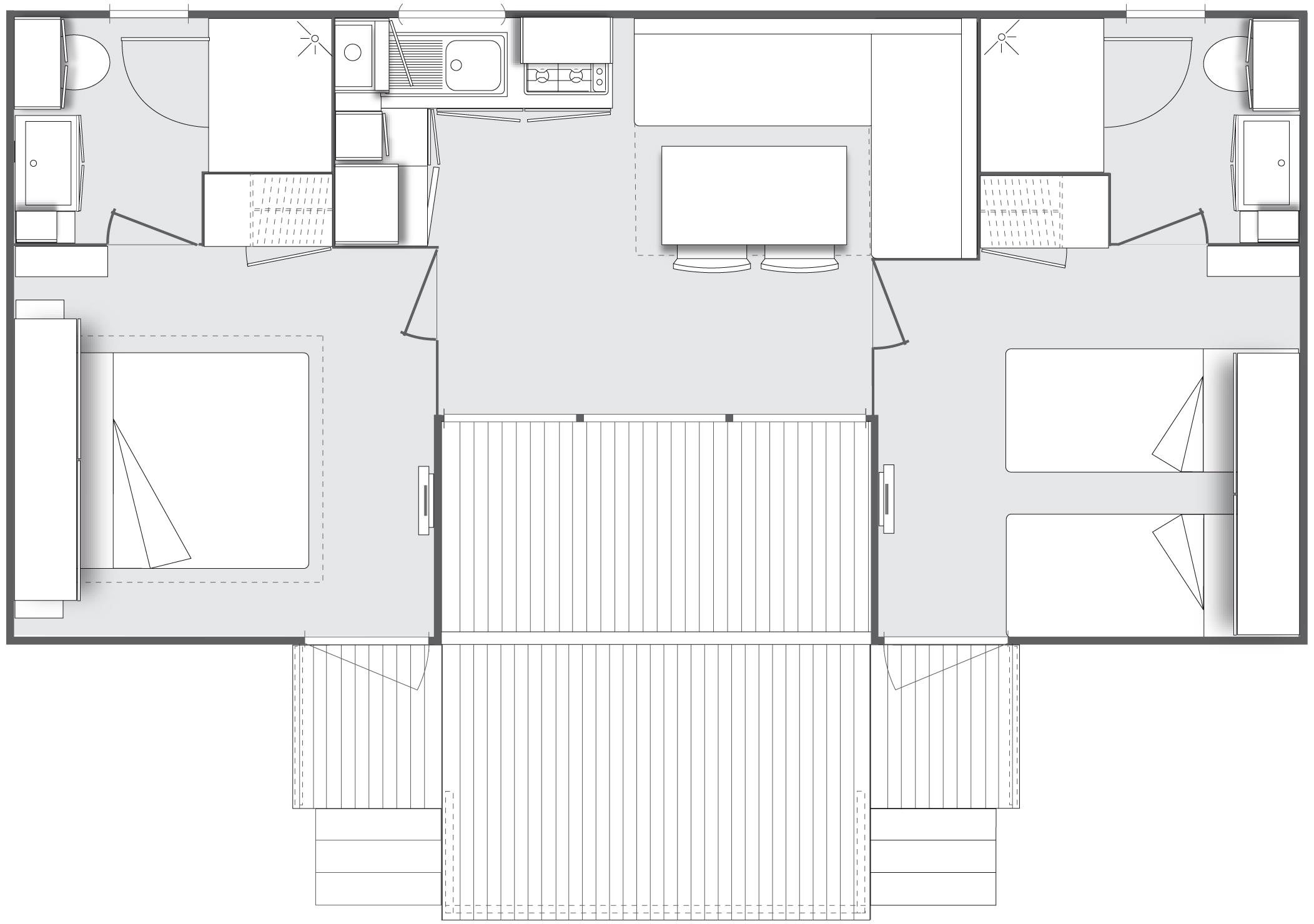 Mobil-home CONFORT 2 chambres + 2 salles de bain 28 m² Terrasse Couverte